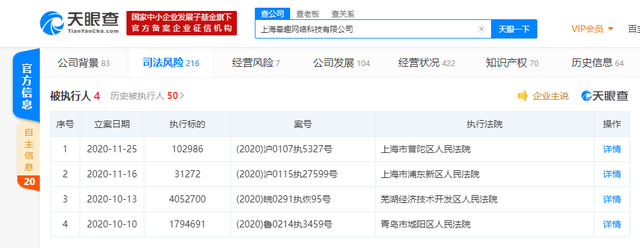 据天眼查APP显示,近日,“丰趣海淘”关联公司上海牵趣网络科技有限公司新增一条被执行人记录,执行法院为上海市普陀区人民法院,执行标的约10.3万。目前该公司现存4条被执行人记录,累计执行标的超598万。