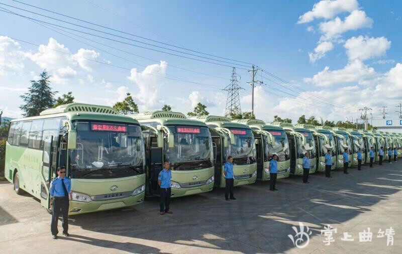 掌上曲靖讯 7月18日7时,一辆崭新的绿色新能源纯电动公交车驶出师宗汽车客运站,由师宗驶向曲靖方向,随着首班车辆的正点发车,师宗⇌曲靖城际公交快线正式开通营运。