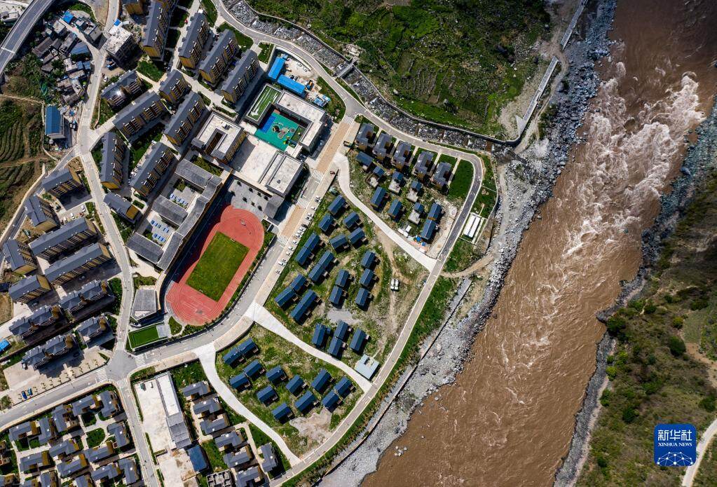 位于怒江边的云南省怒江傈僳族自治州泸水市大兴地镇格力小学(2020年5月18日摄,无人机照片)。新华社记者 江文耀 摄