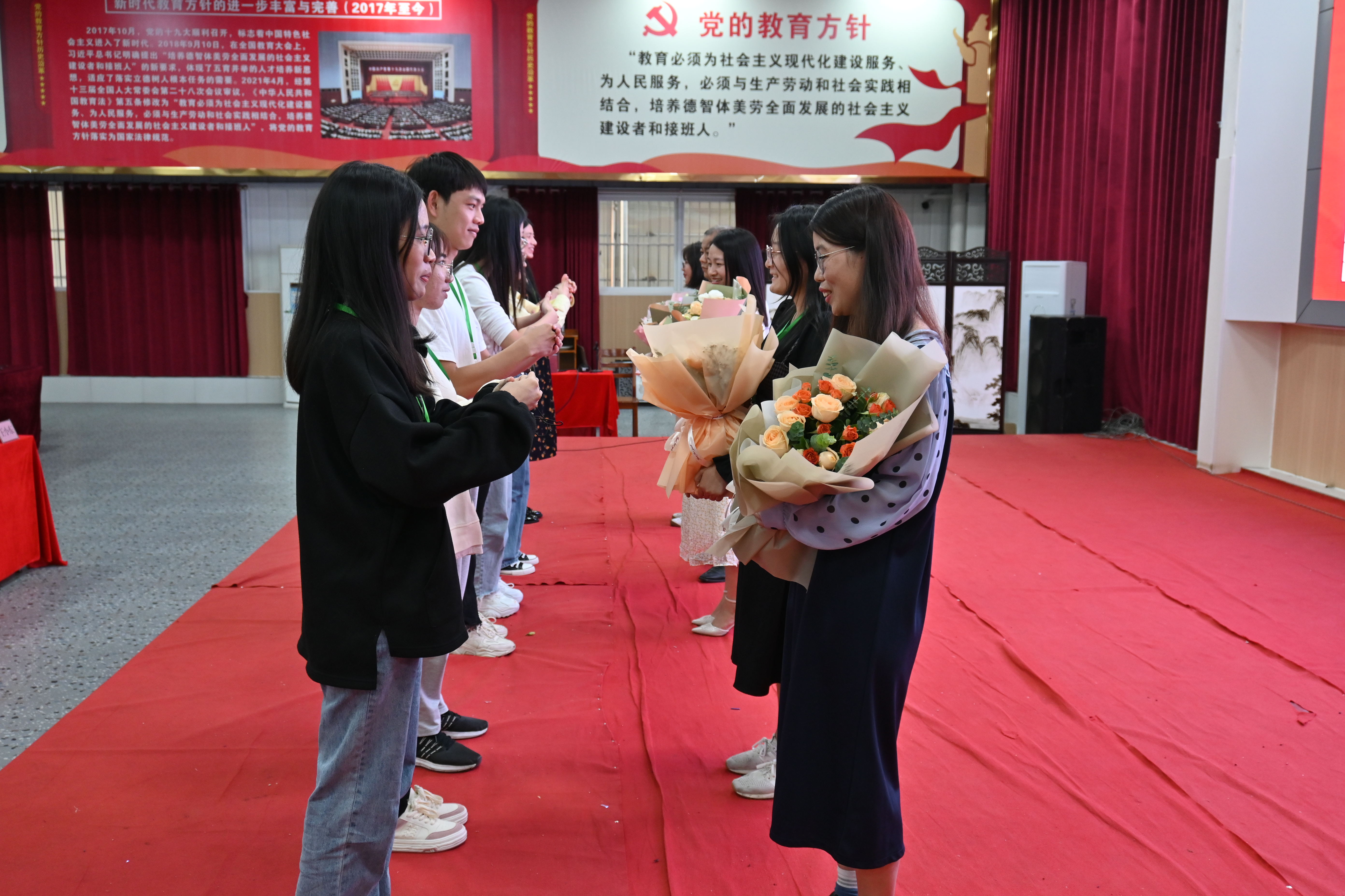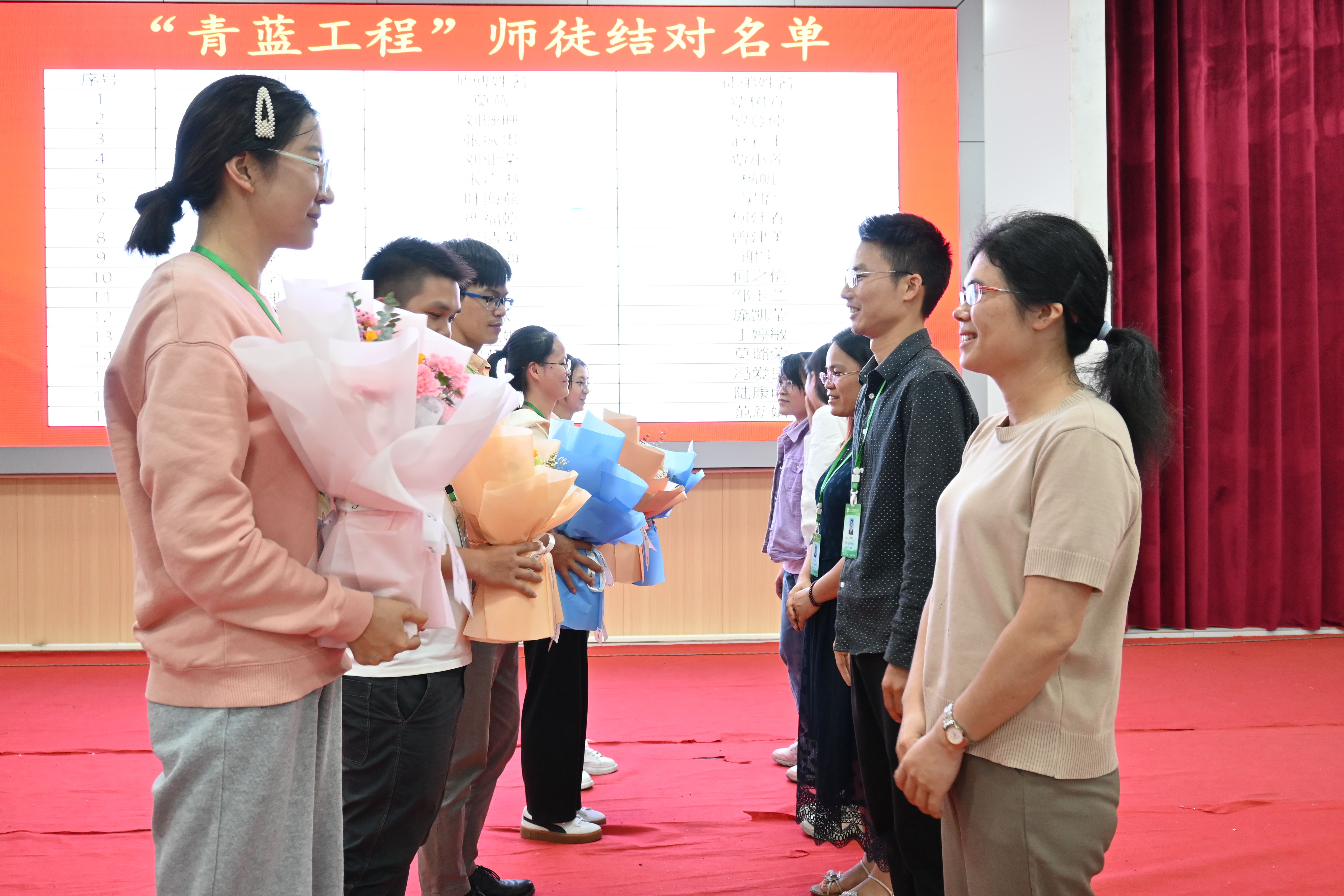 活动宣读学校《青蓝工程师徒结对名单》和《胜蓝工程师徒结对名单》,明确了师徒的角色及职责,传达具体实施计划,共结成17对青蓝工程师徒和33对胜蓝工程师徒,现场徒弟给师傅献花作揖,签署师徒结对承诺书并正式为师傅们颁发了聘书。学校通过“青蓝工程”让校内优秀教师指导、帮助新老师尽快实现角色转换,快速提高教学业务水平,成为学校高质量发展的中流砥柱;“胜蓝工程”将充分发挥学校优秀老班主任的示范指导作用,使年轻班主任能尽早掌握班级日常管理技巧和对学生德育教育方法,将其有效渗透到日常教育教学活动之中,迅速提升班级文化建设水平。