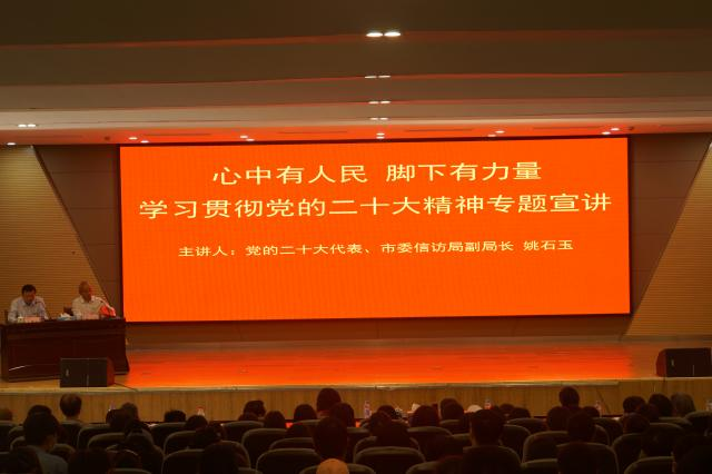 会上,姚石玉为大家作了题为《心中有人民 脚下有力量》的宣讲报告。他结合此次赴京参加党的二十大的经历和工作实际,从感恩、感谢、起程、赴京、参会、感受与体会六个方面为大家作了一场内容详实、生动精彩的宣讲报告。