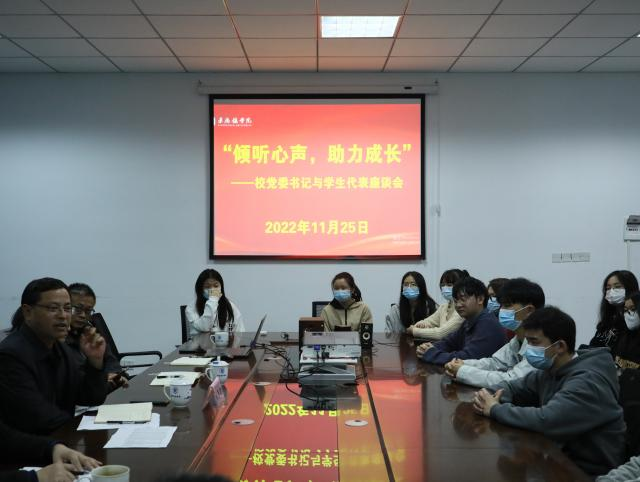 随后,为进一步了解学生诉求,促进学校发展,叶观荣继续参加了经管学院学生代表座谈交流会。学生代表积极发言,围绕食堂餐饮、课程安排、宿舍设施、疫情防控、考公考研、图书馆闭馆时间、公共设施使用等方面遇到的问题提出中肯的意见与建议,为学校的发展建言献策。叶观荣认真倾听,详细记录了学生代表提出的问题,要求相关部门抓紧落实,尽快解决,用心用情做好学生服务工作,为同学们的学习和生活提供良好的环境。