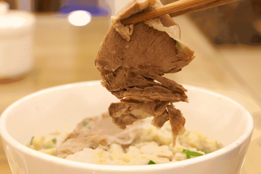 泡馍,馍一定要自己动手掰,并将掰好的馍放在碗里,递给店家,这时候一定要交代一句:“老板,汤宽!”