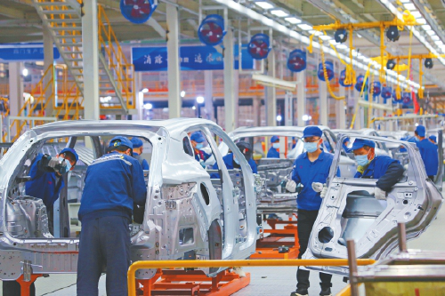 西安比亚迪草堂工业园比亚迪新能源汽车零部件增产扩能项目车间。记者 孙鹏摄