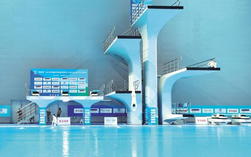 西安奥体中心游泳跳水馆。 记者 杜玮摄