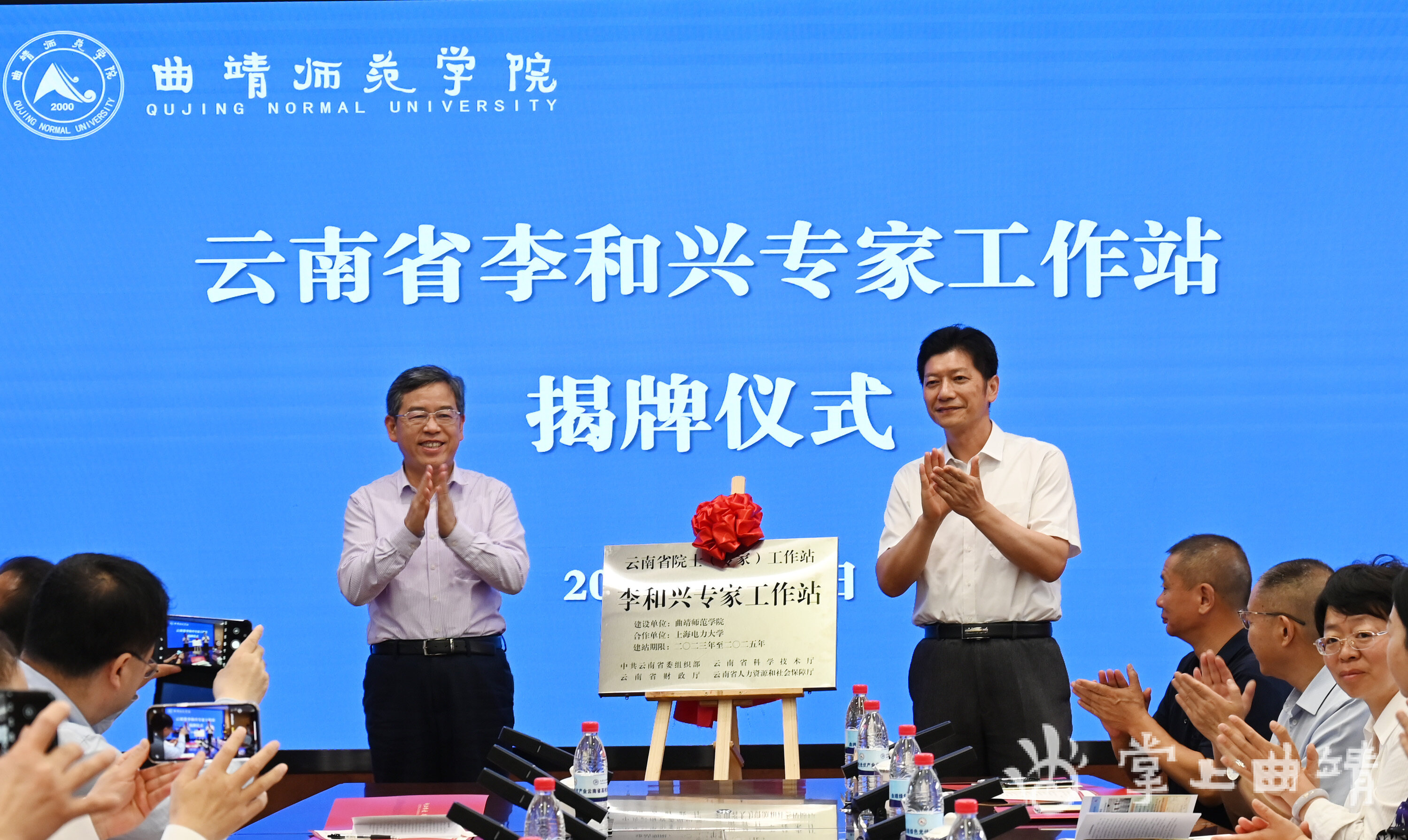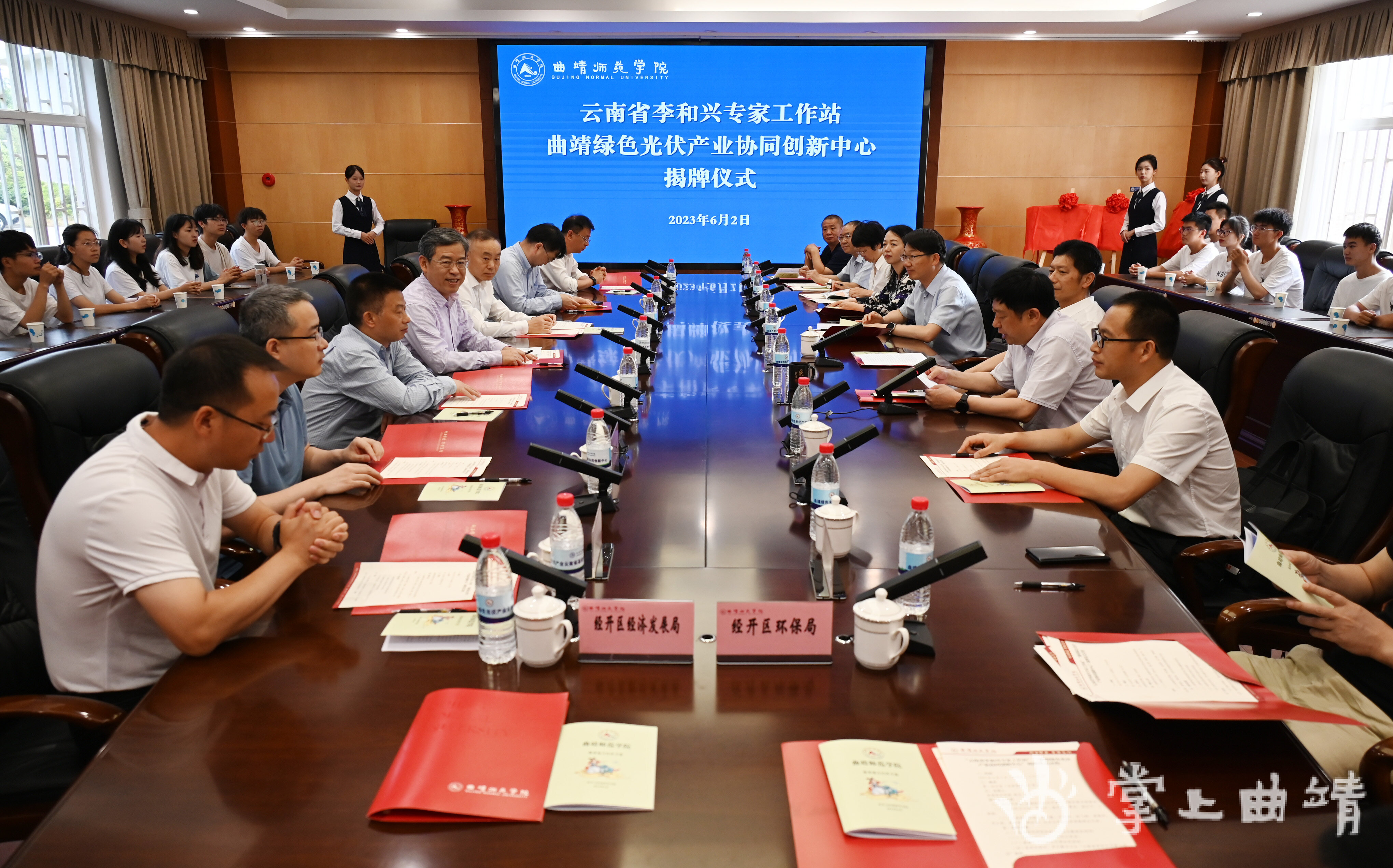 掌上曲靖讯 (曲靖日报记者孙云霞)6月2日上午,“云南省李和兴专家工作站”和“曲靖绿色光伏产业云南省高校协同创新中心”揭牌仪式在曲靖师范学院举行,上海电力大学校长李和兴,曲靖市委常委、常务副市长龚加武,曲靖师范学院党委书记李永勤等领导出席活动并揭牌。