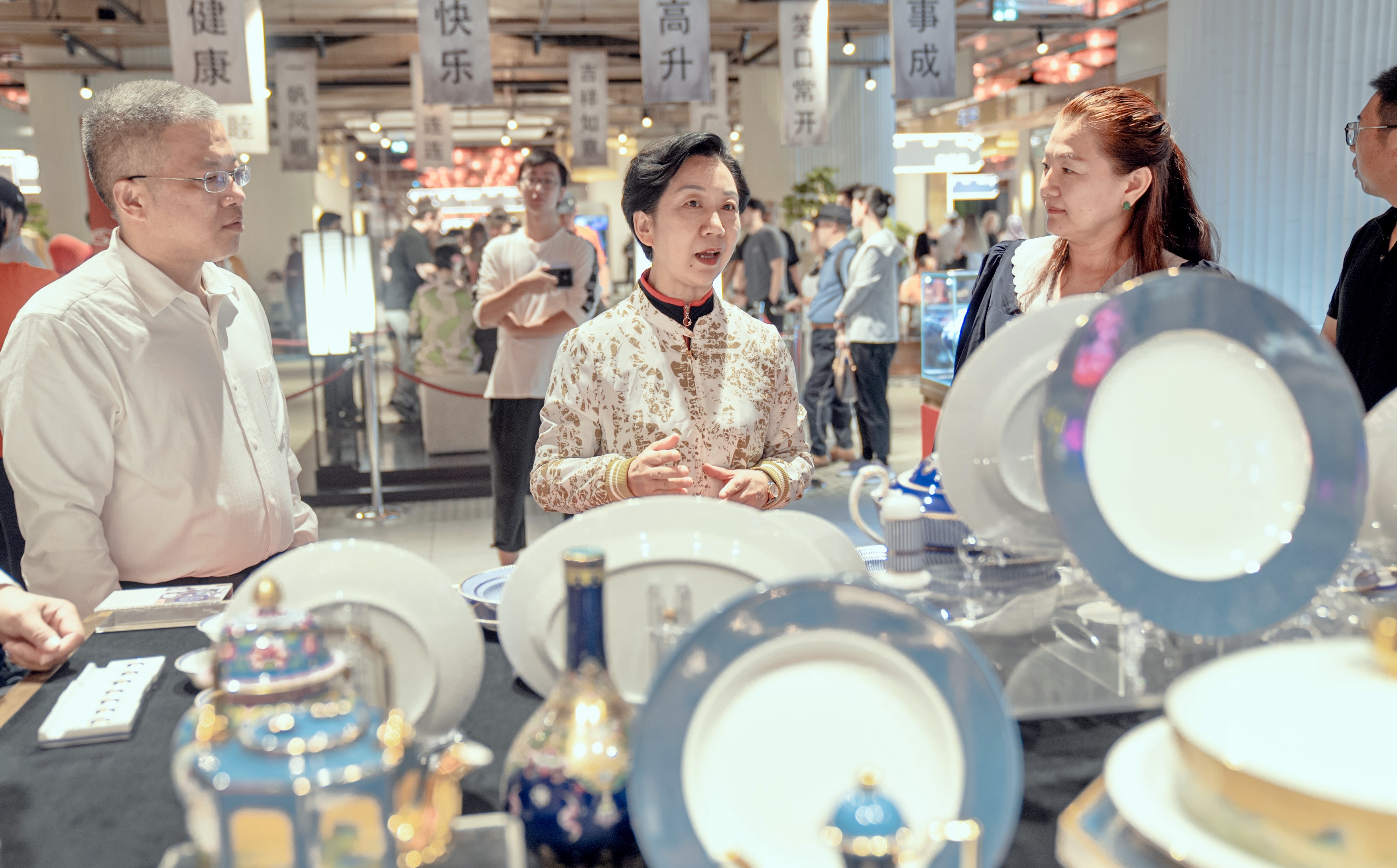 在DUBAI MALL,胡雪梅对景德镇陶瓷官方旗舰店进行实地考察。在听取相关负责人汇报后,胡雪梅对该旗舰店给予充分肯定,并围绕国际视野、品牌定位、门店形象及产品结构提出具体要求。她强调,景德镇陶瓷官方旗舰店海外首站布局中东,是践行“一带一路”倡议的重要举措,是“打造对外文化交流新平台”的重要成果。作为行走的景德镇城市名片和文化窗口,景德镇陶瓷官方旗舰店要结合陶瓷文化推广体验中心,让文化与贸易交融,交流与交易并行;要不断创新发展格局,完善“前店后中心”布局,确保既做好文化传播,又做好产品推介,努力把景德镇陶瓷官方旗舰店打造成为中国文化与世界交流的一张靓丽名片;要立足迪拜,强化辐射,用心呈现最具代表性的景德镇陶瓷,用文化提升产品价值,用产品讲好中国故事,进而点亮全球化布局,不断向世界传播中国文化、输出精品陶瓷。