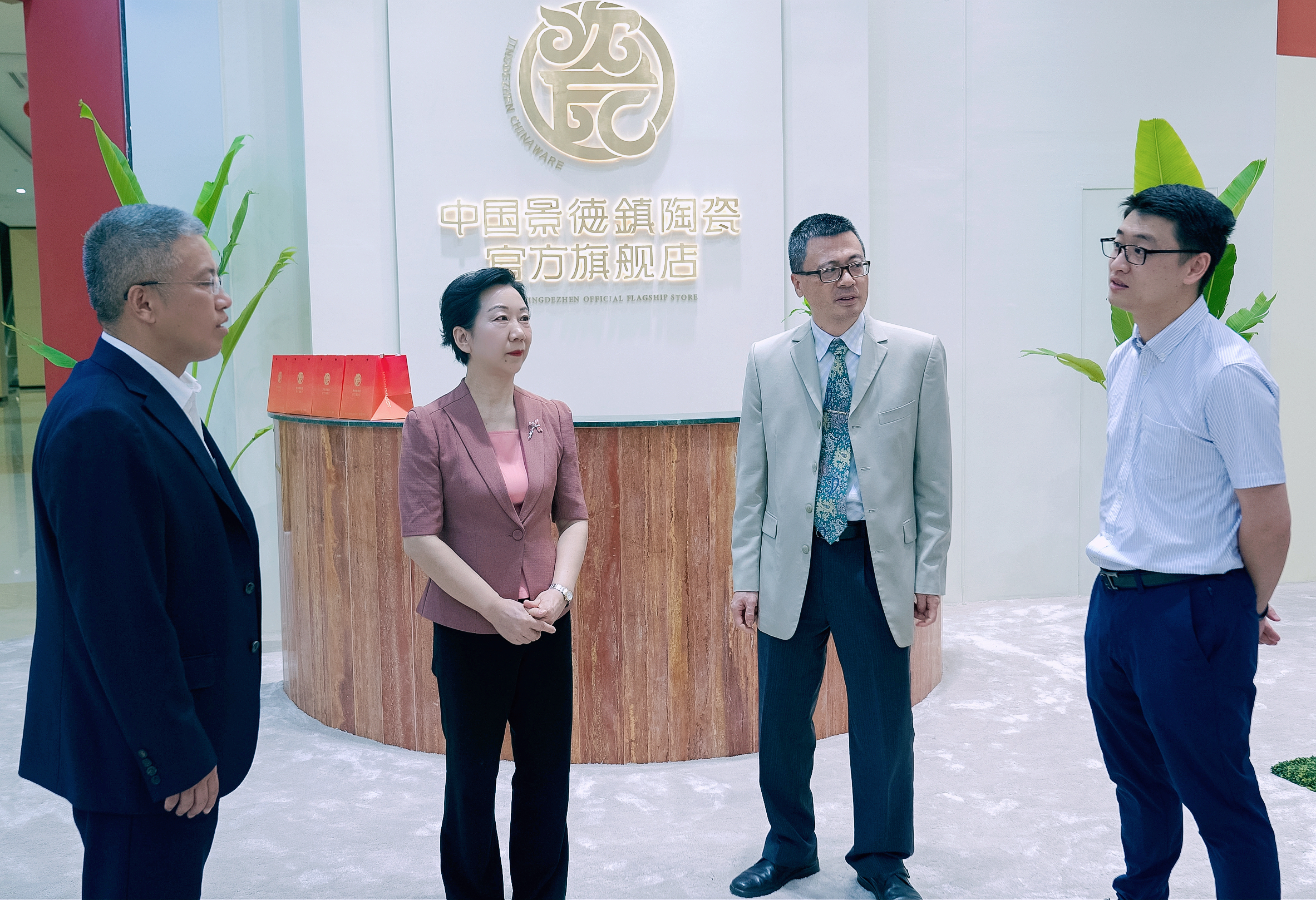 胡雪梅在景德镇陶瓷官方旗舰店实地调研。