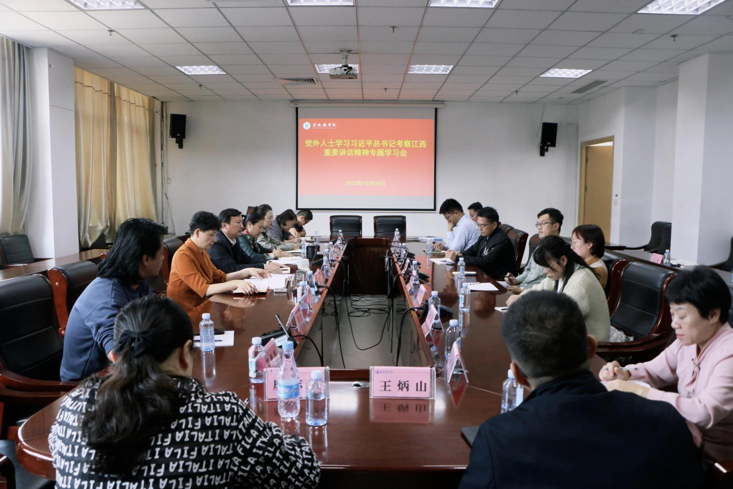 为深入学习习近平总书记考察江西重要讲话精神,10月26日,景德镇学院召开学校党外人士学习习近平总书记考察江西重要讲话精神专题学习会。该校党委副书记王丽心,党委委员、统战部部长万文军出席会议,校党委统战部副部长程桑主持会议。