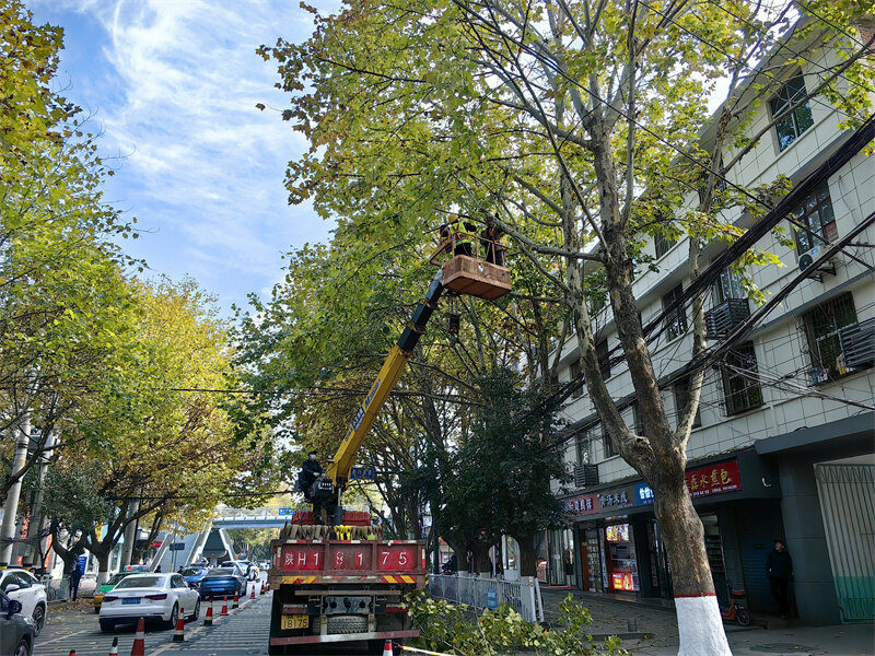 为大树“整形”美颜。充分利用树木休眠期,对法桐、国槐等800余株高大行道树整形修剪,去除病虫枝、内膛枝等,保持树冠通风透光,树形优美。