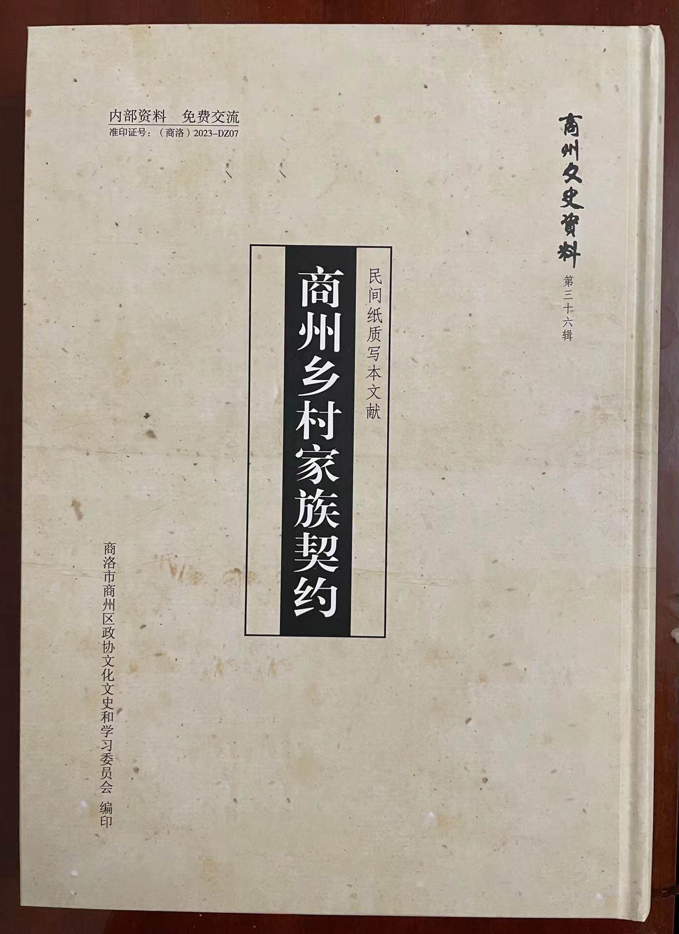 有鉴于此,我对于周刚同志收藏的部分商州民间契约文书也特别在心。现在,看到他精心点校整理的这部《商州乡村家族契约》,由商州区政协列入“商州文史资料”,并作为重点“文史专辑”予以出版,感到特别高兴!在此,也对商州区政协领导和文史委同志的敏见卓识,表示由衷的赞赏与感谢!