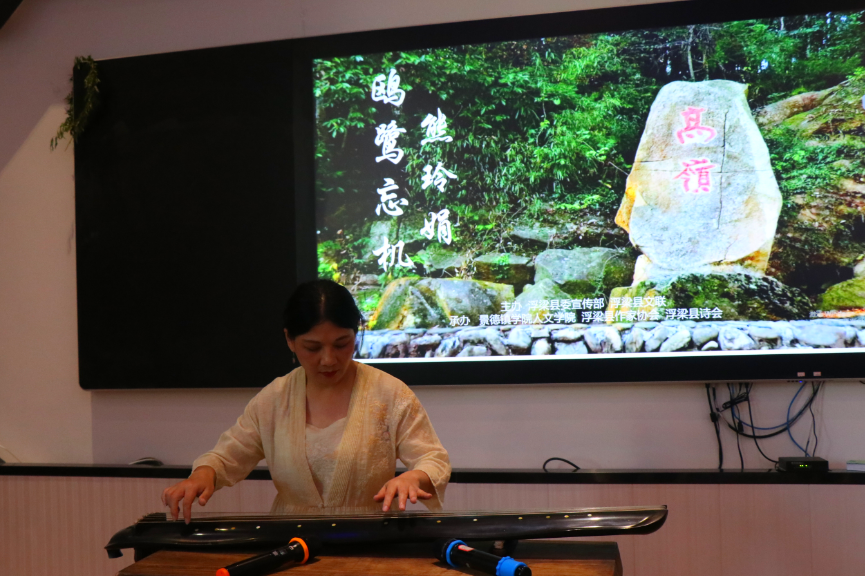 诗会当中,穿插的节目表演与诗歌朗诵,赢得了阵阵掌声。美妙的朗诵,将文字的力量转化为感情的音符,如同品味一杯杯香茗,芳香四溢。又如同春风拂面,使人心旷神怡,仿佛置身于诗情画意之中。古琴独奏《鸥鹭忘机》,让文朋诗友们沉浸在宁静与自由的境界中,忘却了尘世的琐碎。传唱半个世纪的红歌经典革命电影《闪闪的红星》插曲《映山红》优美的歌声,浓郁的民歌味道,让大家感受到了“映山红的精神”。笛歌组合《书香年华》,把歌曲的神韵演绎得淋漓尽致。