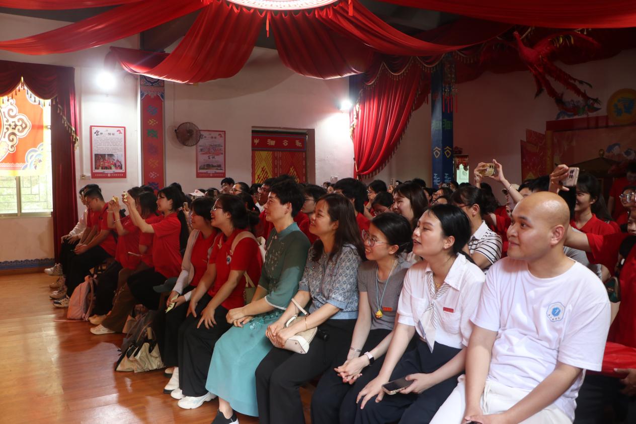 在新月村畲族青年的带领下,师生们观看了畲族传统民俗表演,现场学习了畲族传统舞蹈——竹竿舞。跟随着自然拍打的节奏,与畲族青年共同起舞,大家被畲村人民的热情与浓厚的畲族文化氛围感染,欢声笑语不绝于耳。