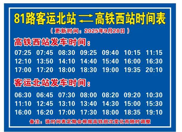 公交发班时间会根据高铁时刻表变化