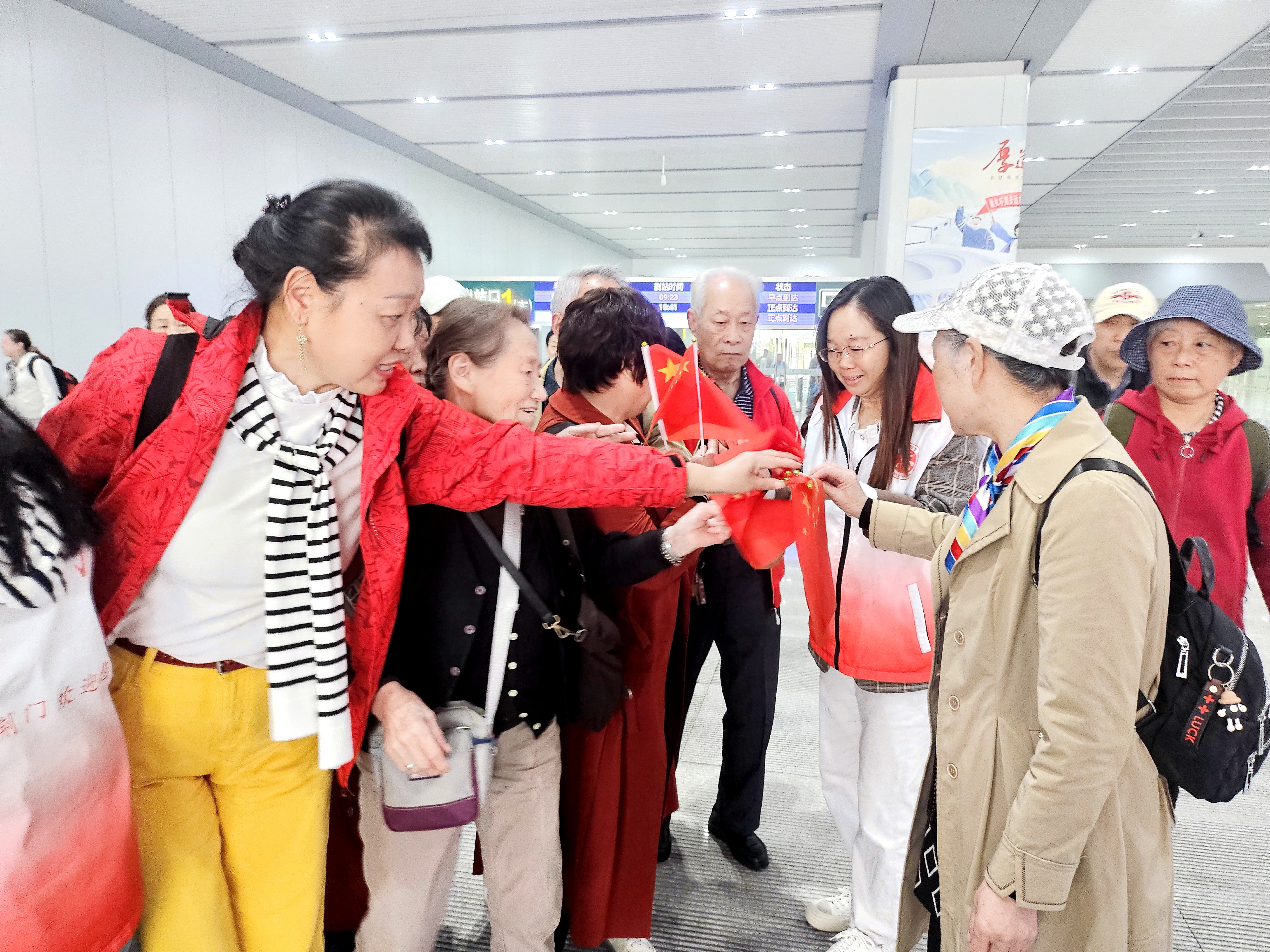 有的旅客当即高兴地与国旗合影,记录下与荆门初遇的动人瞬间;有的则小心翼翼地将国旗收好,准备将这份喜悦带回家与亲人分享。