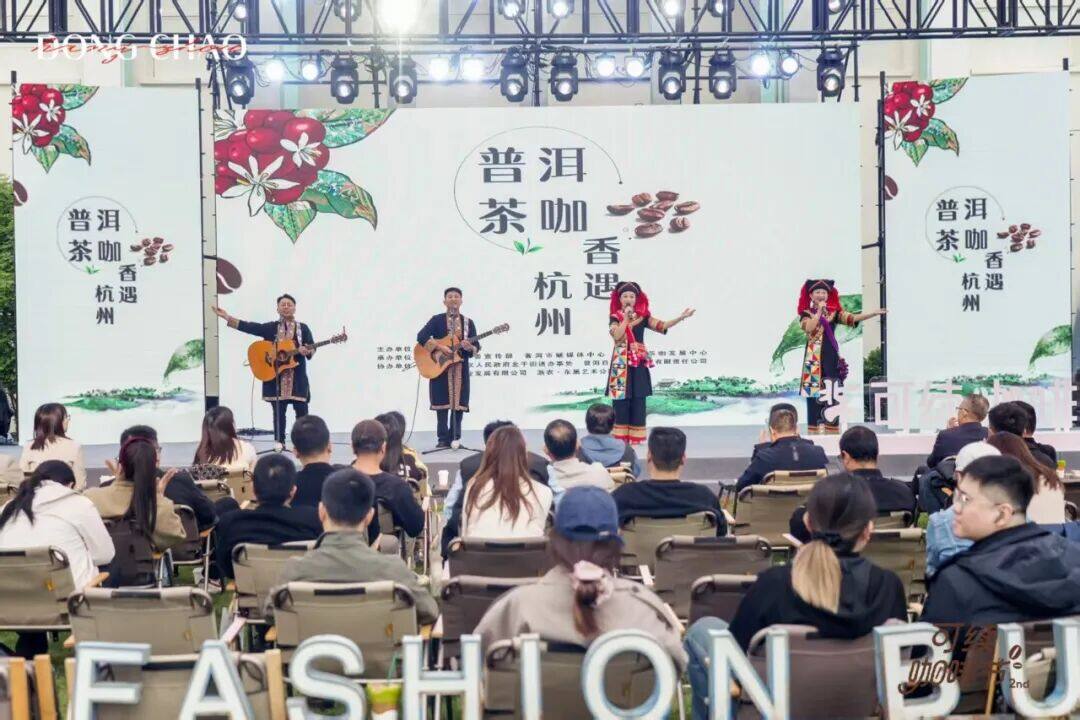 推介会现场冲泡着普洱咖啡和普洱茶,在咖香茶韵中,来自普洱的歌手演唱《我把故乡比苏杭》,来自杭州的歌手演唱《婚誓》,以音乐的形式表达了两地的深厚情谊。