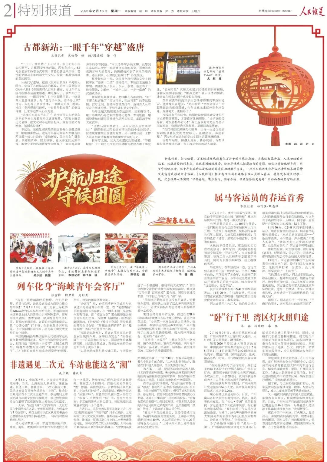 科技与消费、文化融合,解锁美好生活新体验。消费日报聚焦智能科技带动的年节消费升级,记录AI与消费场景结合的新趋势,《电子年货:数字时代里的年味变革》一文,生动展现了数字时代的年味新变;中国经济时报记者走进智能家居体验店,观察扫拖机器人、智能厨电、全屋智能控制系统在春节大扫除、年夜饭筹备中的应用,探讨智能消费成为家庭消费新增长点的发展趋势;中国航天报刊发《彩虹新“翼”飞向新春 !彩虹YH-1000S无人运输机登场首秀》,告诉我们,唯有坚持“产业出题,科技答题”,未来产业才能扎根现实、创新务实,真正夯实高质量发展的根基,在塑造未来中赢得主动;中国汽车报刊发《老胡同不用抢车位怎么做到的?》,深入剖析老胡同通过管理模式与技术手段结合实现有序停车的创新实践,让科技服务城市治理、便利百姓生活。