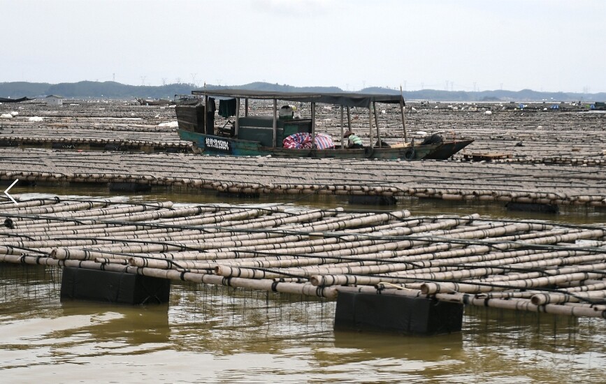 ↑ 图为广西钦州市龙门港七十二泾内的海上大蚝养殖基地。记者张爱林摄