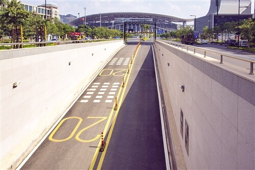 ▲五象新区总部基地地下空间项目凯旋路汽车出入口。