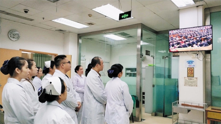 市卫计系统组织干部职工分别在所在单位集中收看庆祝大会直播。