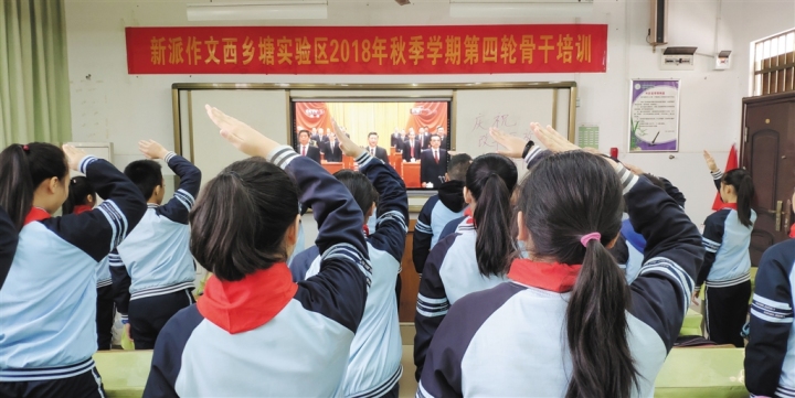 市桃花源小学组织师生集中收看庆祝大会直播。六(1)班学生潘柳妃表示,要从小好好学习,学好知识,长大以后报效祖国。党员教师龙强表示,要紧跟教育改革发展的步伐,为教育事业奉献自己的一份力量,为实现中华民族伟大复兴的中国梦不懈奋斗。