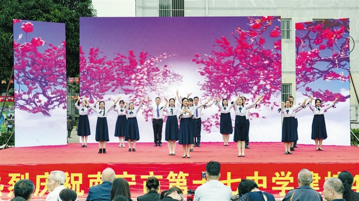 南宁市第十七中学举行建校40周年庆典仪式。图为开场舞《辉煌十七中》。 黄维业 摄
