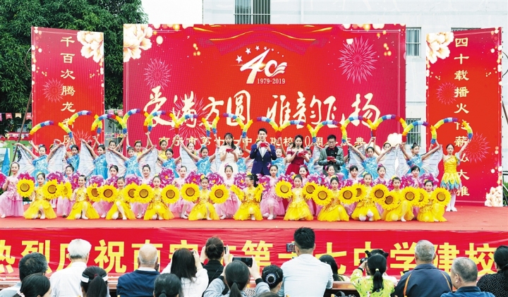 “此刻,我们在这里一起见证,见证十七中人四十年不忘初心的辉煌,见证十七中人牢记使命的荣光……”昨日,“爱满方圆 雅韵飞扬——南宁市第十七中学建校40周年庆典活动”举行,十七中人欢聚一堂,共话学校发展历程,展望学校灿烂前景。
