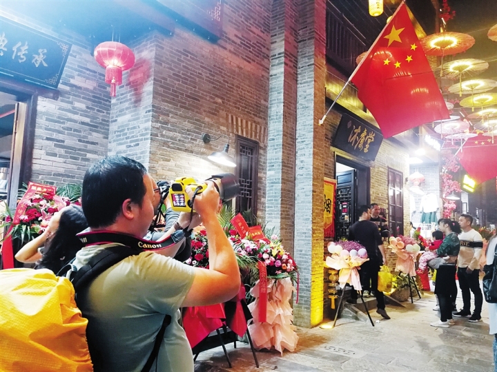 网络大咖在“三街两巷”采风,将南宁夜景分享给粉丝。 记者莫岚远 摄