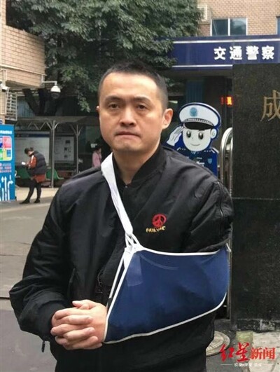 11月20日,距事发已过去三个多月,钟科的左臂仍绑着吊带。