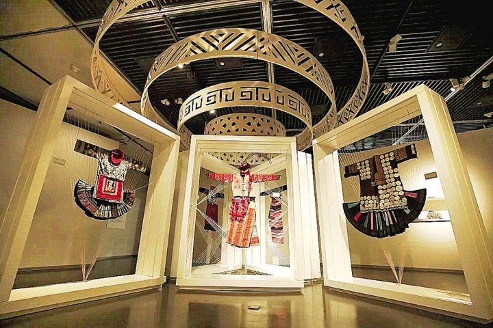 “古典爱情——中国少数民族传统爱情文化展”持续在南宁博物馆展出。展览通过中国民族博物馆馆藏的100多件展品,结合现代意象装置带领观众穿越时空,感受中国少数民族自由热烈充满歌舞诗意的传统爱情文化。本次展览区别于以往平铺直叙的展品陈列,采用装置与陈列并行的方式,将少数民族传统爱情文化拆解为诗意、花房、物语、行礼4个部分。展厅中以“圆”为基础设计元素,营造出花好月圆的意境,各种民族元素穿梭在展厅各个部分,利用抽象符号和光影变幻让传统与现代彼此交错,向观众描述浪漫随性、蓬勃美好的少数民族爱情世界。