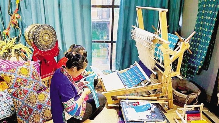 百益·上河城非遗生活馆内织女展示手工技艺。(市文广旅局供图)