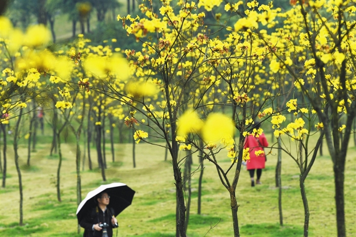 南宁市江南公园黄花风铃花盛开。 (胡雁 摄)