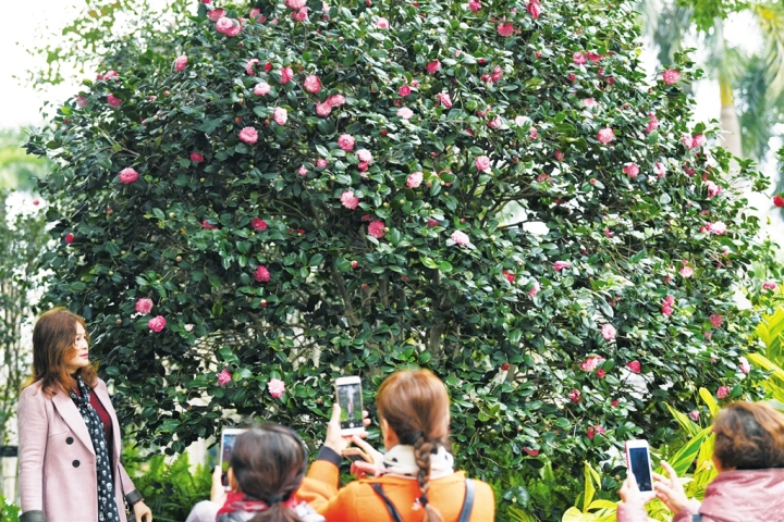 南宁市金花茶公园茶花盛开引游人。 记者荣融 摄