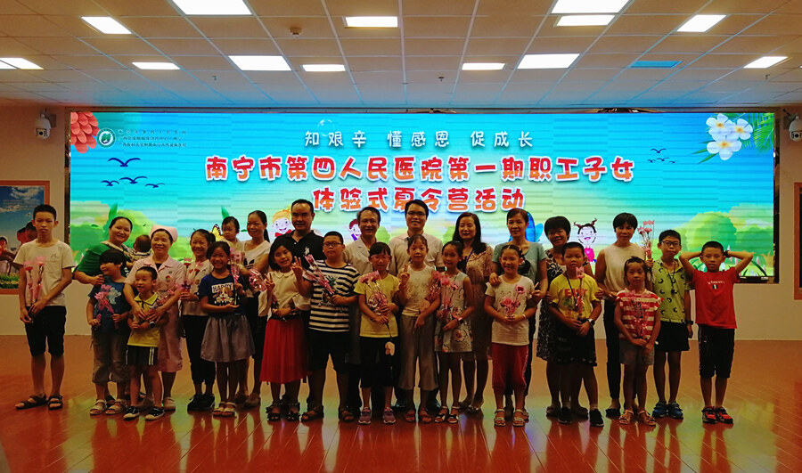 8月23日上午,南宁市第四人民医院工会组织了《知艰辛 懂感恩 促成长》第一期职工子女体验式夏令营活动。据主办方介绍,为让孩子们更好地感受父母工作的辛苦,学会和懂得感恩,本次活动邀请了近20名在职职工子女(小学、中学年龄段)到医院参观,亲眼见证父母们工作的艰辛繁忙,用心体会白衣天使们呵护生命的默默奉献,引导孩子们树立正确的人生观、价值观。
