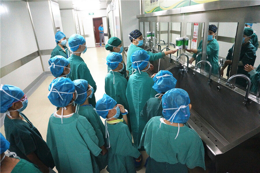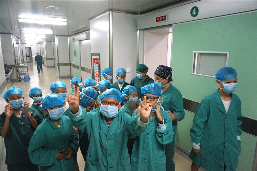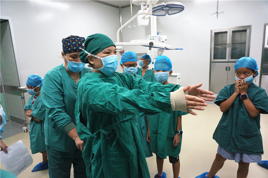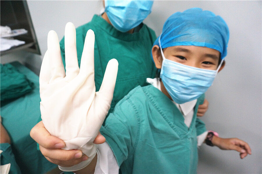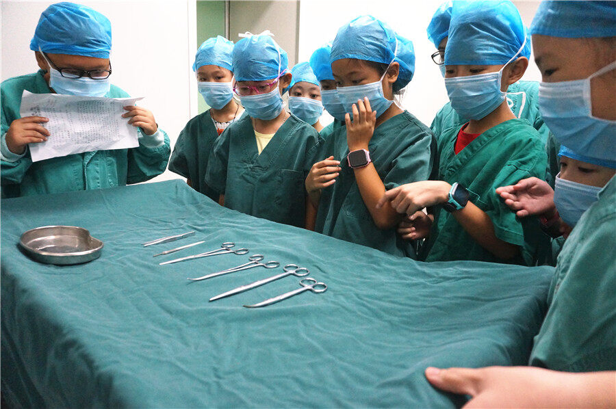值得一提的是,在参观手术室时,孩子们按照要求穿好隔离服,戴好帽子口罩,走进手术间,参观无影灯、手术医疗用具......孩子们一下子被安静、整洁的手术室深深吸引住了。“原来进入手术室还需要经过这么多道消毒的关卡,还需要长时间佩带口罩。”六年级的倪树浩参观后向记者说道。