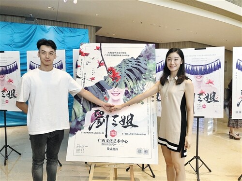 “刘三姐”王倩和“阿牛哥”刘迦合影。 莫俊 摄