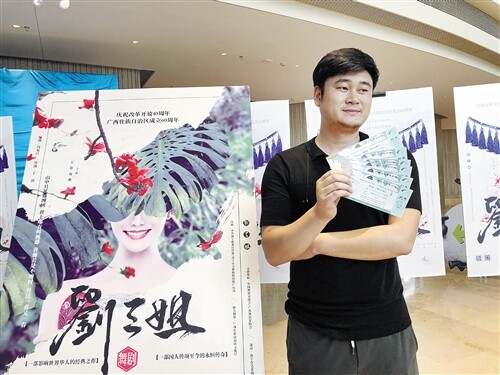 本报讯(记者莫俊 实习生凌秀梅)8月28日上午,南宁市迎接自治区成立60周年文化文艺精品项目——舞剧《刘三姐》在广西文化艺术中心大剧院举行开票仪式。众多热心市民和艺术爱好者来到现场参加活动,并共同见证舞剧《刘三姐》形象宣传海报和剧目纪录片的发布。