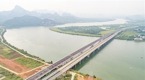 整个柳南高速公路改扩建项目共涉及六景郁江特大桥、马滩红水河特大桥和洛维大桥3座大桥,除马滩红水河特大桥是新建外,另外2座大桥均采用了在旧桥一侧新建一座大桥的形式,目前六景大桥新桥已经通车,正在对旧桥进行改造施工,马滩红水河特大桥也已经实现全桥合龙。