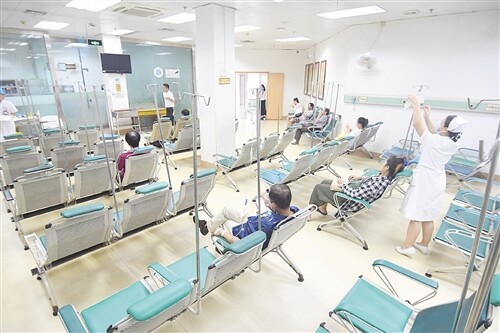 据多家医院相关人员称,全区二级以上医疗机构取消门诊输液首日,输液人数急降。