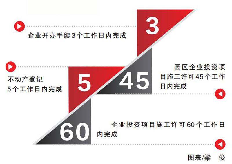 《实施方案》还提出,2020年底前,园区企业投资项目施工许可45个工作日内完成,企业投资项目施工许可60个工作日内完成的目标任务。