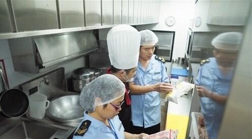 食药监管部门对餐饮服务单位开展食品安全检查 记者 宋延康 摄