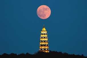 高手在民间。来自南宁市育才实验中学的老师王喆拍下的《月圆龙象塔》同样令人惊艳。他也来分享拍摄超级月亮的秘诀:“拍摄超级月亮的秘诀就是要有前景衬托。最容易找到的前景往往都是地面上的建筑,所以拍摄超级月亮的时候月亮一定不能升起太高(仰角不能高),用长焦镜头拍摄,并且要尽量远离前景。距离前景越远,拍摄出来的月亮的就会显得越大。当我确定要在南宁大桥拍摄,并用龙象塔作为前景,在月亮升起之前我就已经到达南宁大桥的拍摄位置,等待月亮升起。月亮与龙象塔的重合时间不超过2分钟,所以必须要提前做好准备。”