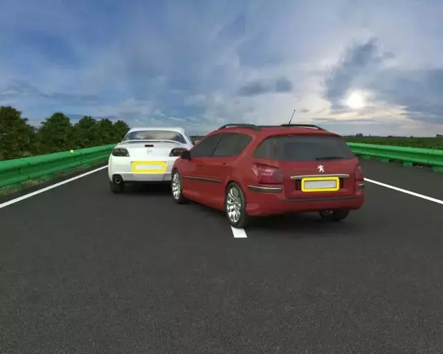 当事人在确保安全的条件下用手机、相机等拍摄现场车辆前、后全貌(能反映出事故车辆和路面标线)的照片2张,车辆左、右两侧的照片2张,近距离拍摄车辆碰撞接触位置的照片1张,一共5张照片就已经足够了。
