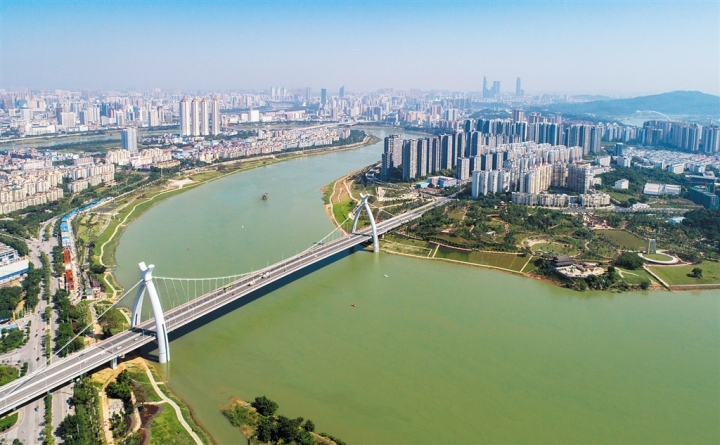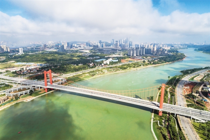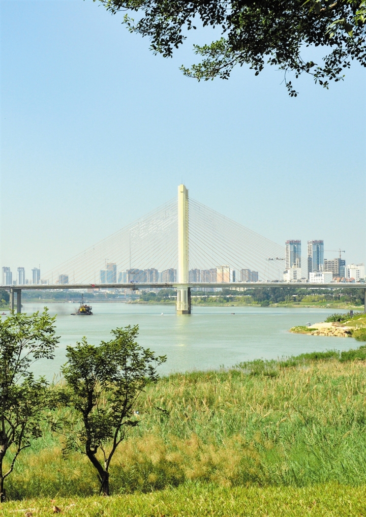 2016年4月30日建成通车的良庆大桥,在碧绿的江水和青葱的远山映衬下,成为邕江上又一道风景线。