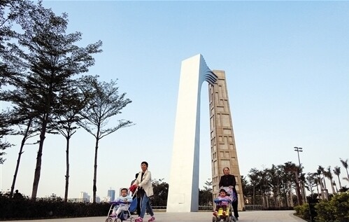 市民在新建成开放的柳沙公园休闲漫步 记者 赖有光 摄