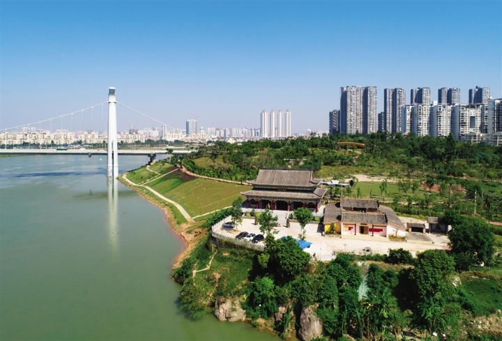 近几年,江边的环境越来越好,我时常和社区的老姐妹们一起到江边跳舞、唱歌,日子越过越舒心。特别是江边还建造了平话怀古广场、师公戏小剧场、平话剧场等人文景点。这些都是我们本地人的记忆,很亲切。以前社区场地有限,我们排练只能见缝插针;现在好了,江边就有场地,不用担心排练影响附近居民。