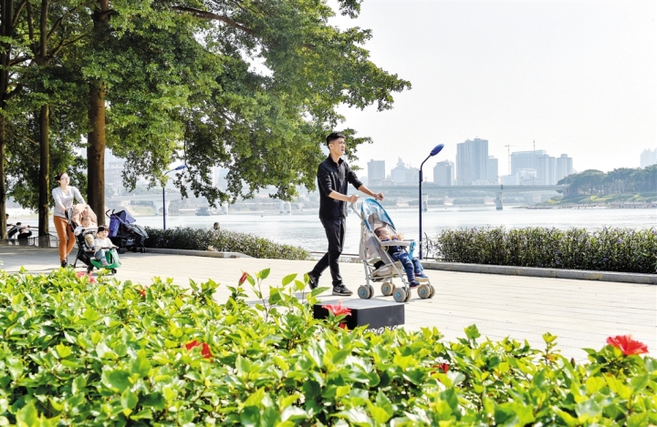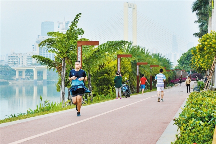 每天到江边散步、骑行的市民不少。“在邕江边骑行,吹着江风,欣赏着两岸的美景,心旷神怡。”骑行爱好者黄玲玉说。