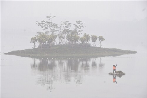 大雾笼罩下的南湖 记者 宋延康 摄