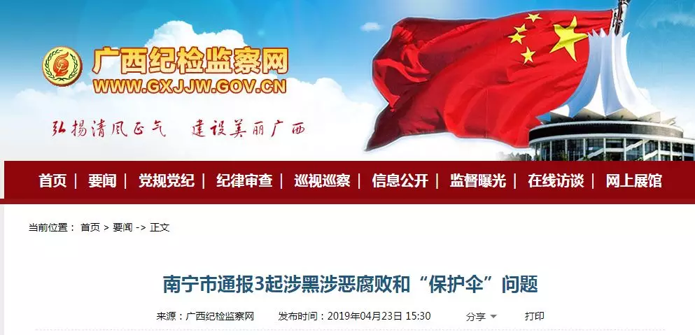 南宁市通报3起涉黑涉恶腐败和“保护伞”问题