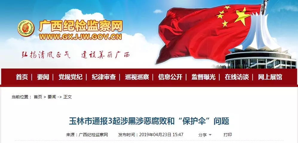 玉林市通报多起涉黑涉恶腐败和“保护伞”问题
